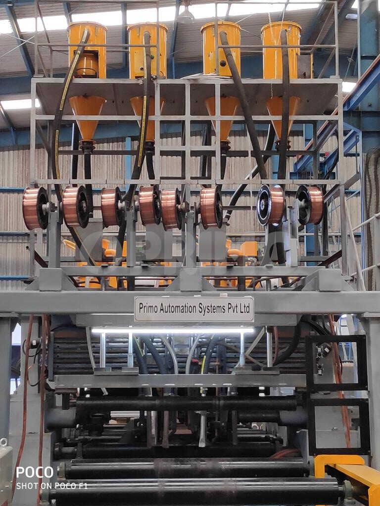 C BEAM WELDING MACHINE WITH FOUR TORCH AND EIGHT COIL WIRE FEEDER