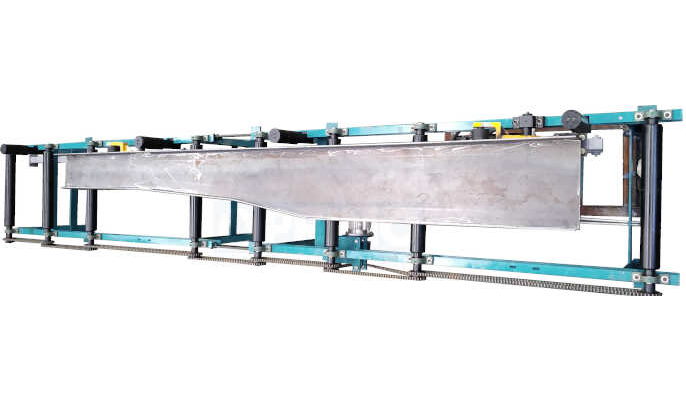 web & flange plates, beam assembly, tack weld and full weld station and